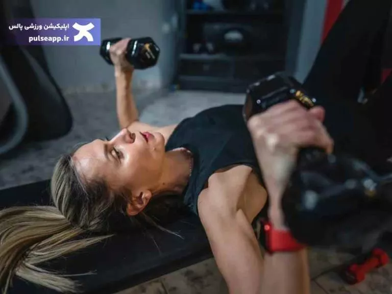 نحوه انجام: روی نیمکت بخوابید، دمبلها را در دست بگیرید، آرنجها عمود باشند و دمبل را به سمت پیشانی پایین آورده، سپس بالا ببرید.